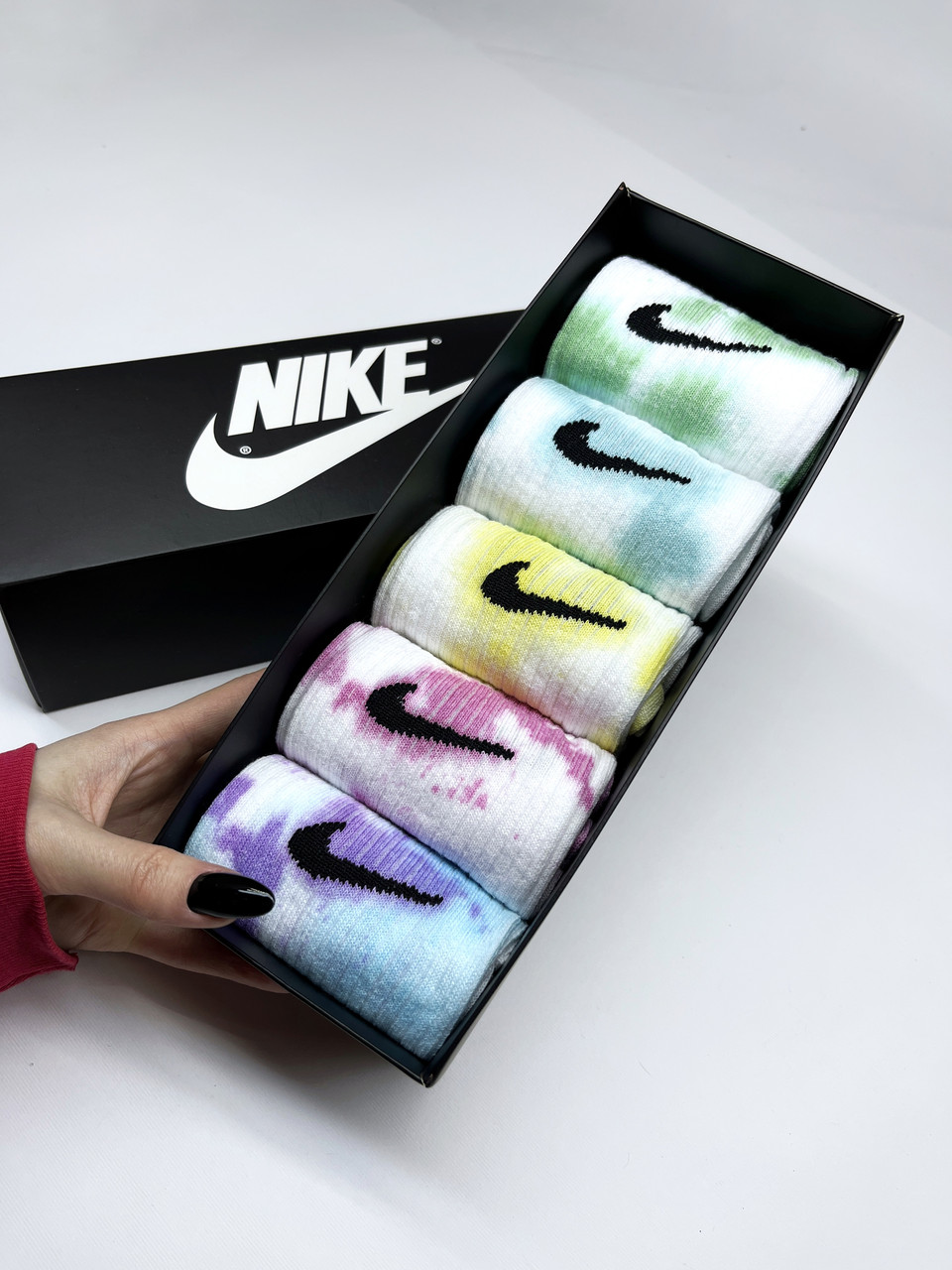 Набір у коробці 5 пар високі жіночі шкарпетки Nike/найк — Tie-Dye кольорові Подарунковий тай дай